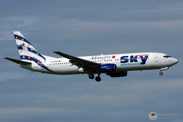 Bemerkung:blue cs, German Sky Airlines title and Adam and Eve sticker